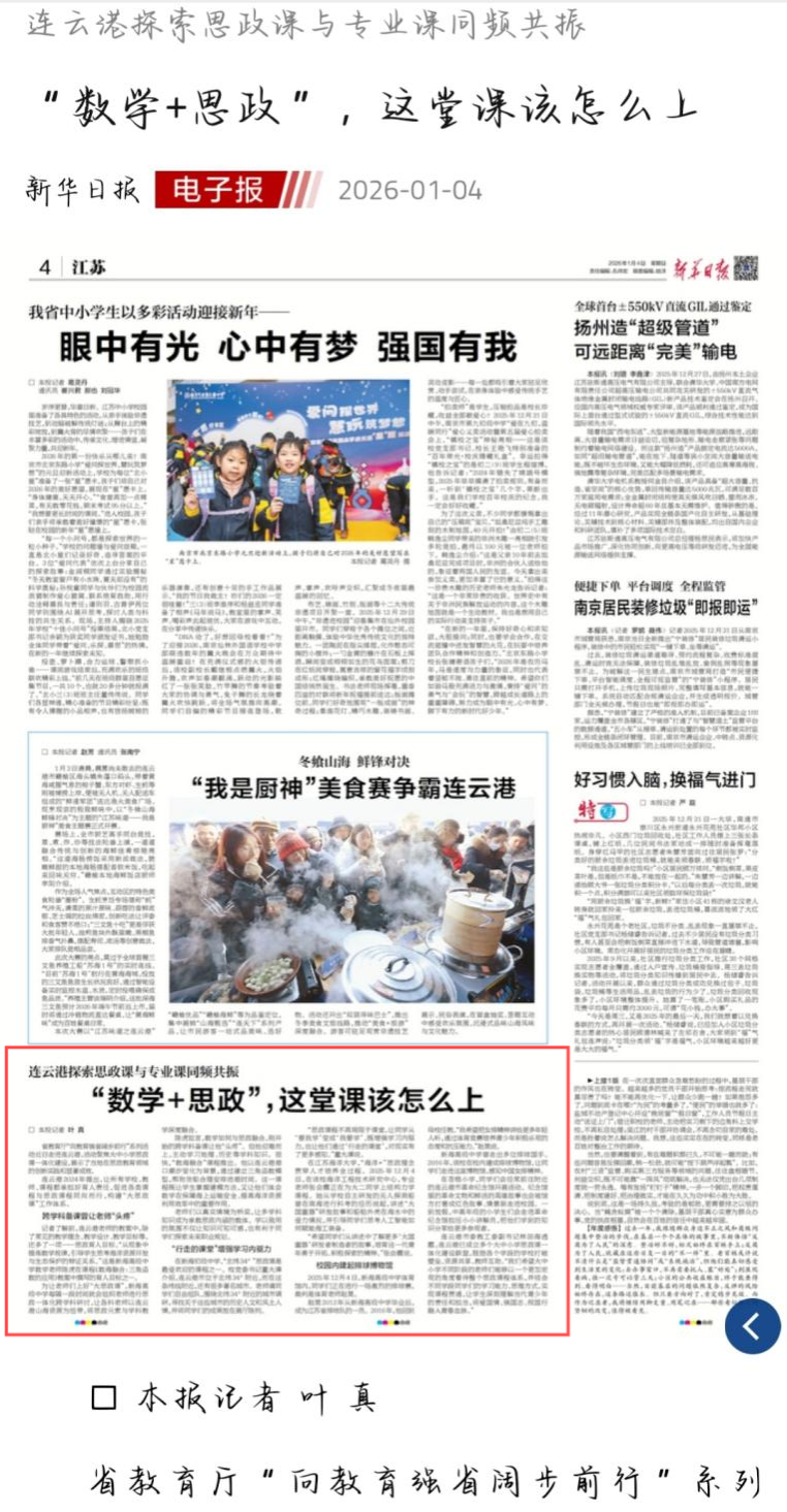陳虎坦言,數(shù)學(xué)如何與思政融合,剛開始的跨學(xué)科備課讓他“頭疼”。但他迎難而上,主動學(xué)習(xí)地理、歷史等學(xué)科知識。很快,“數(shù)海融合”課程推出。他以連云港港口潮汐變化為背景,通過建立三角函數(shù)模型,幫助貨船合理安排進(jìn)港時間。這一課程既讓學(xué)生掌握建模方法,又讓他們體會數(shù)學(xué)在保障海上運輸安全、提高海洋資源利用效率中的重要作用。